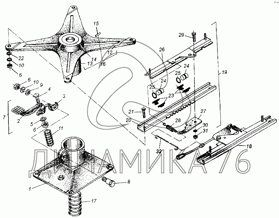 Подставка сиденья и регулировочные механизмы — МАЗ-54326: