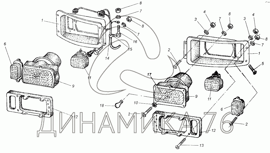 Установка фар на МАЗ-54326 (до 2000 г.)