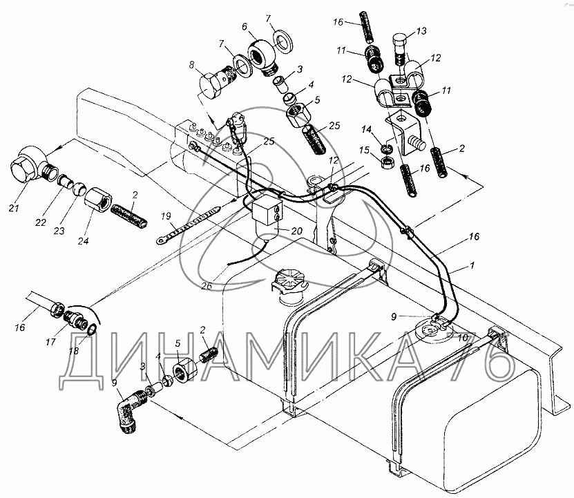 Перечень комплектующих от Установка топливопроводов на МАЗ-54326