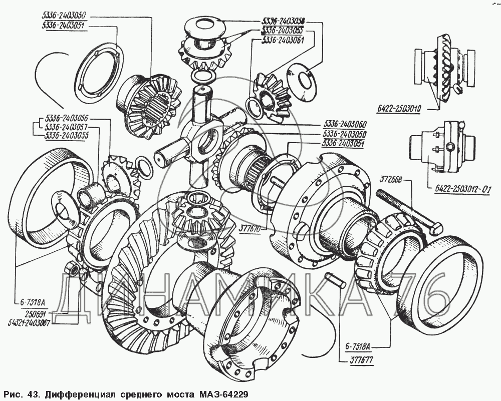 Перечень комплектующих от Дифференциал среднего моста МАЗ-64229 на МАЗ-54328