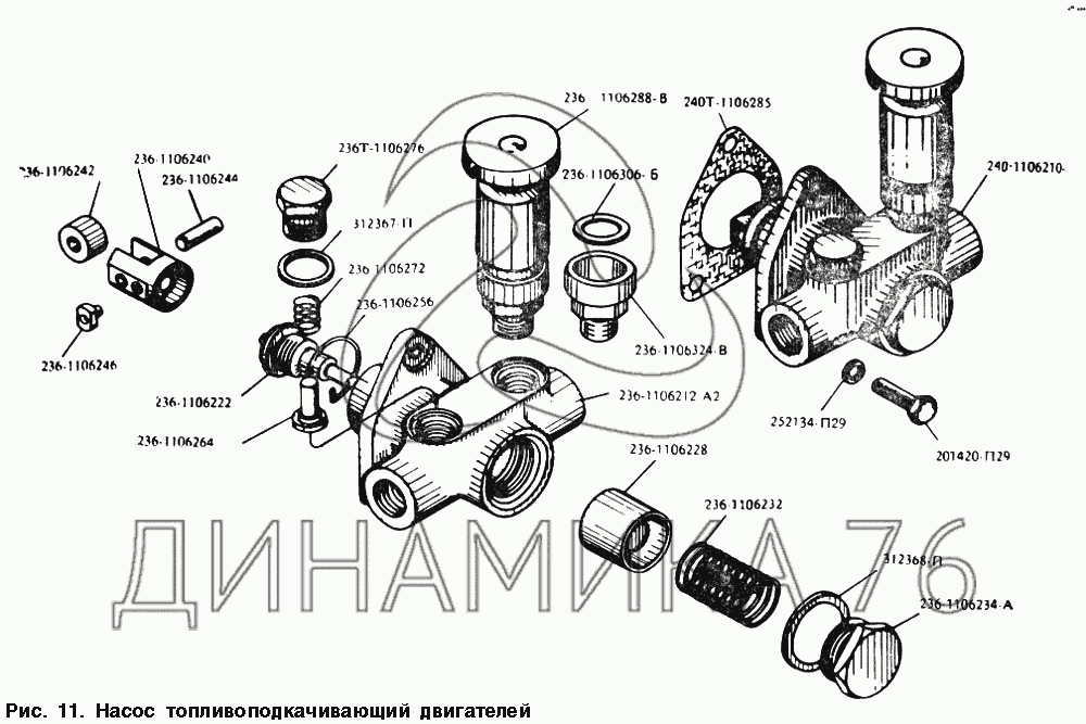 Схемы запчастей предназначены для справочных целей! Мы продаем не все запчасти от Насос топливоподкачивающий двигателей на МАЗ-54328, представленные в этом списке.