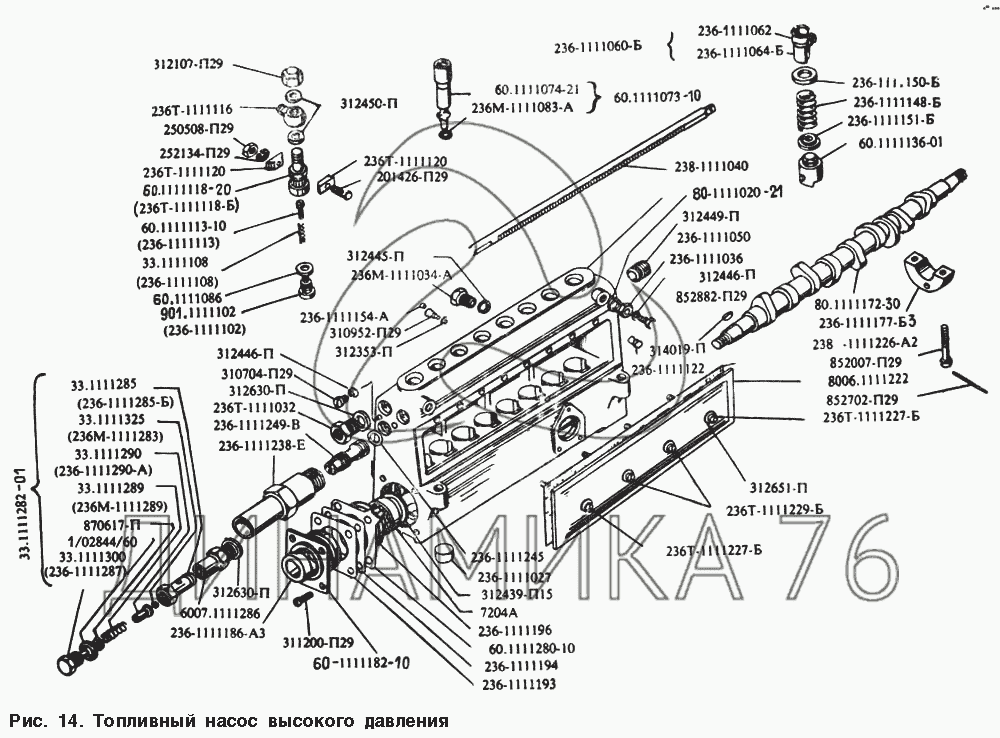 Перечень комплектующих от Топливный насос высокого давления на МАЗ-54328