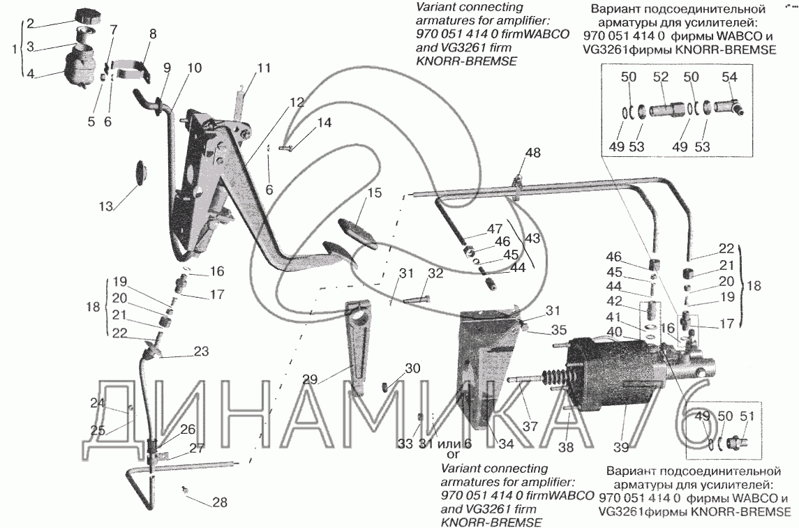 Перечень комплектующих от Механизм управления сцеплением на МАЗ-5432