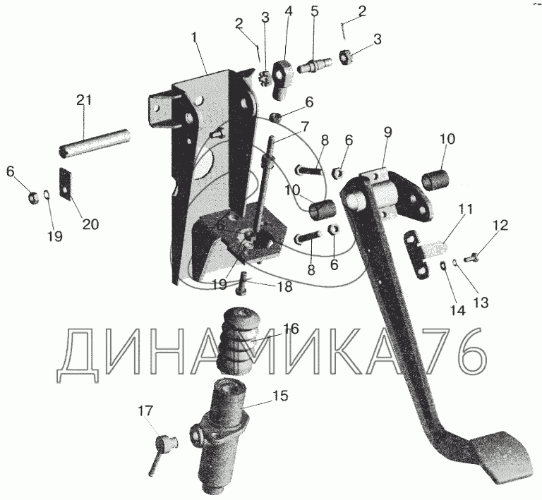 Перечень комплектующих от Основание педали на МАЗ-5432