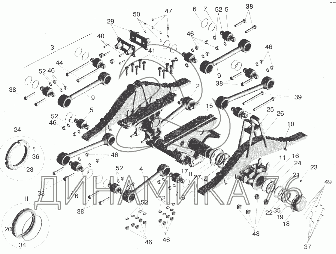 Схемы запчастей предназначены для справочных целей! Мы продаем не все запчасти от Подвеска балансирная 642205-2900002 на МАЗ-5432, представленные в этом списке.