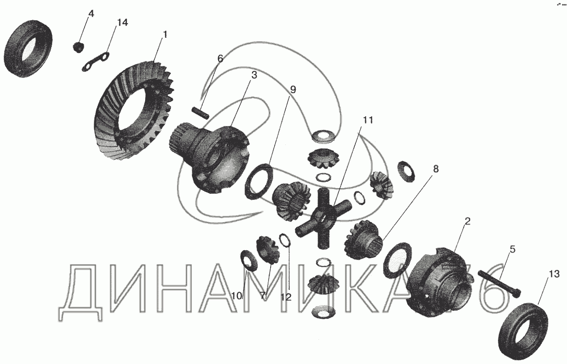 Перечень комплектующих от Редуктор заднего моста. Дифференциал на МАЗ-5432