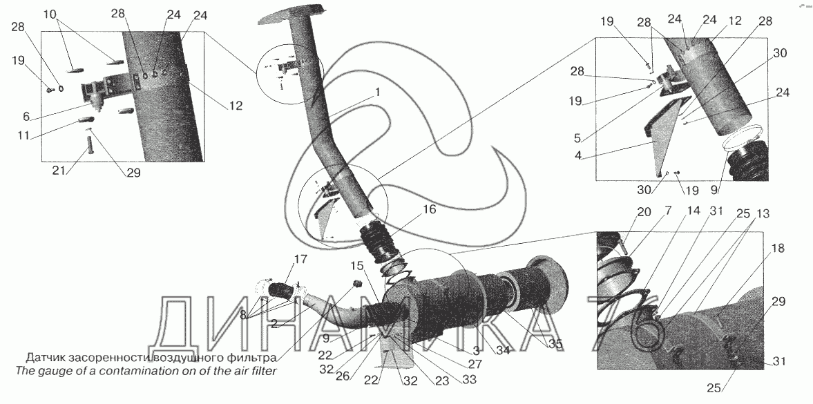 Система питания воздухом МАЗ-551605 на МАЗ-5432 (до 2003 г.)