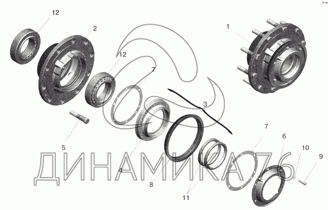 Перечень комплектующих от Ступица моста на МАЗ-5432