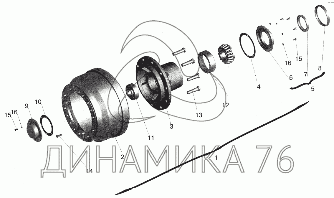 Перечень комплектующих от Ступица переднего колеса на МАЗ-5432