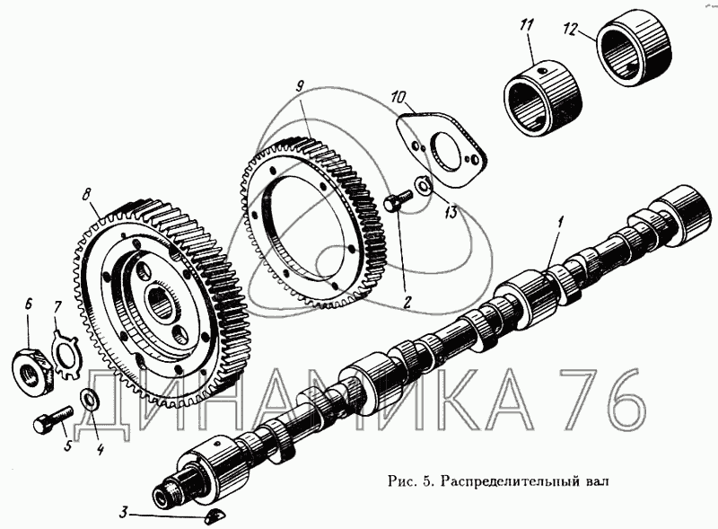 Перечень комплектующих от Распределительный вал на МАЗ-5433