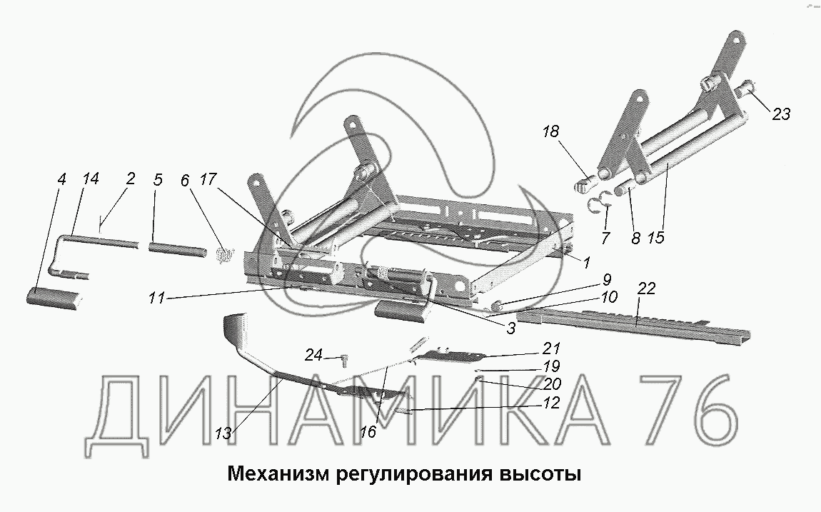 Перечень комплектующих от Механизм регулирования высоты на МАЗ-543403, 641705, 641708
