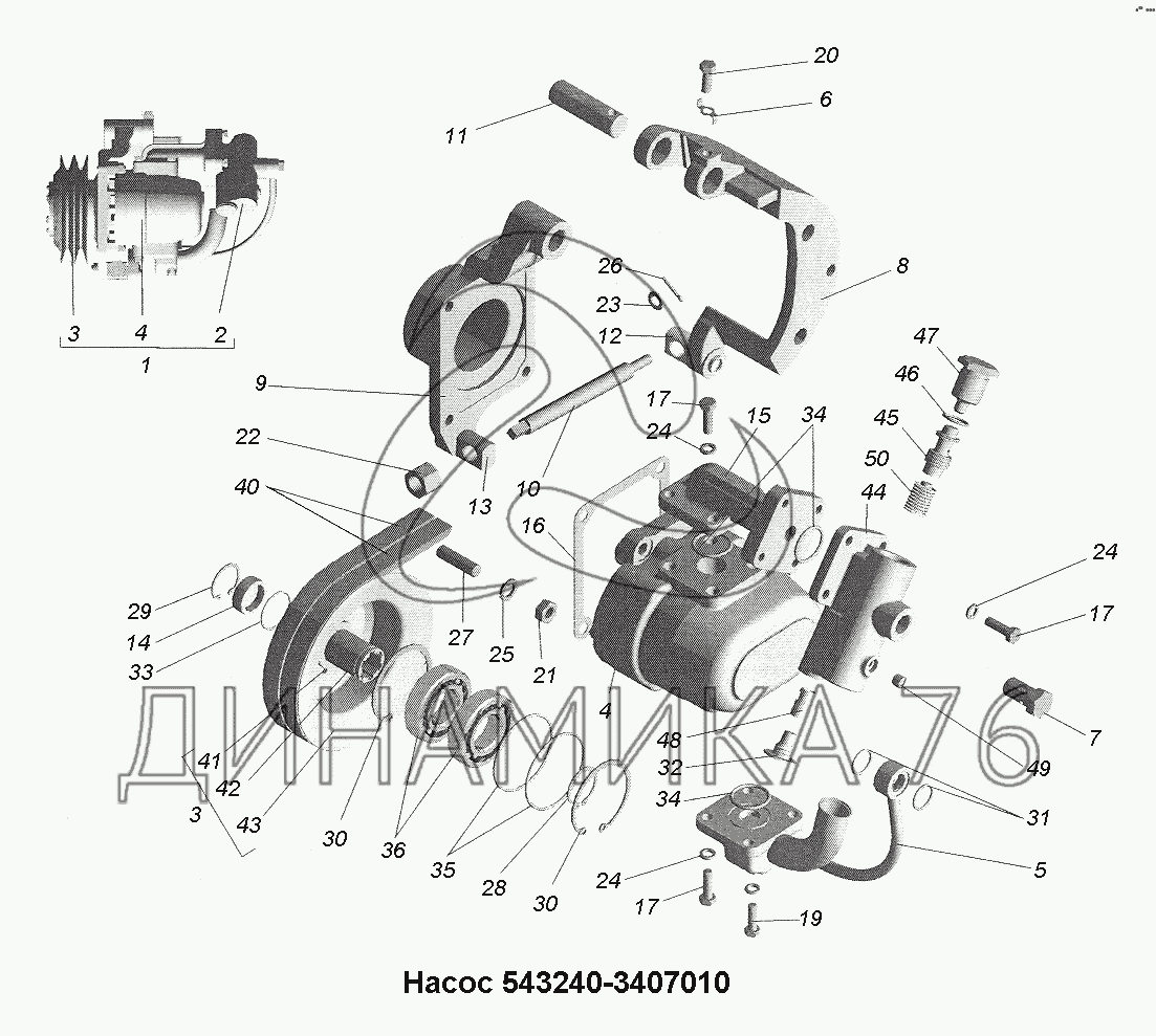 Перечень комплектующих от Насос 543240-3407010 на МАЗ-543403, 641705, 641708