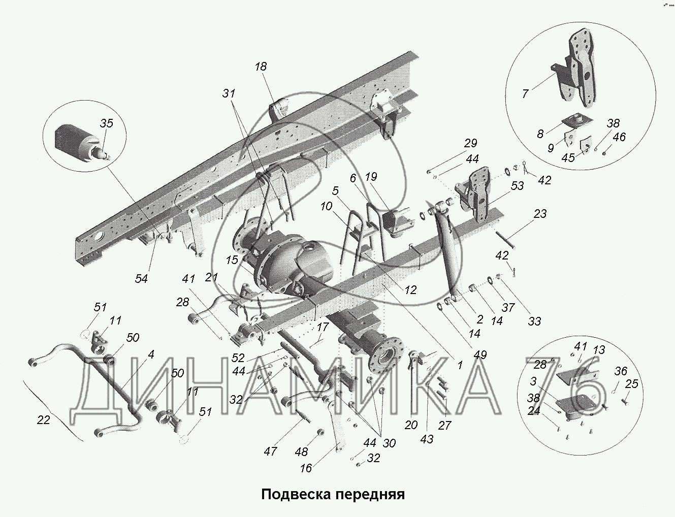 Подвеска передняя — МАЗ-543403, 641705, 641708: