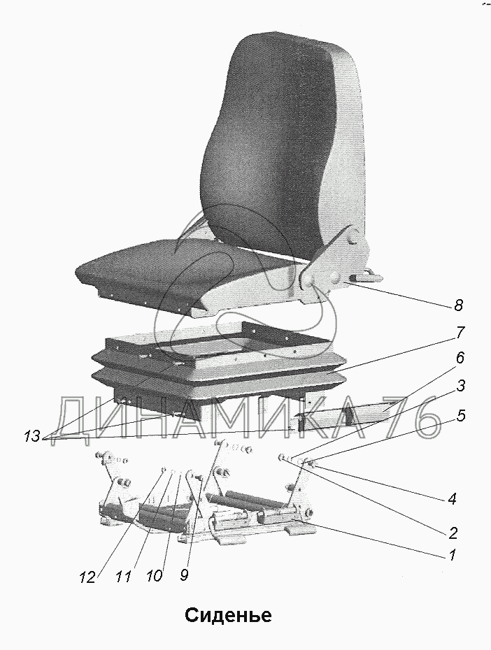 Перечень комплектующих от Сиденье на МАЗ-543403, 641705, 641708