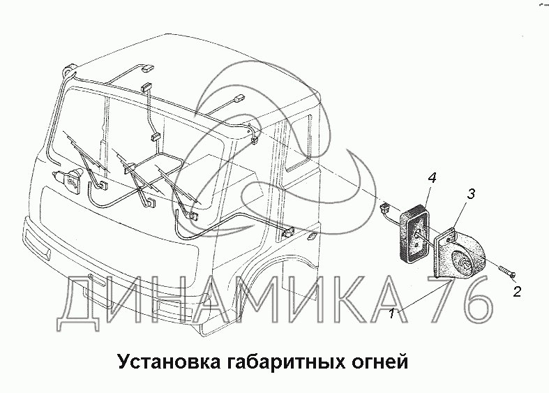 Перечень комплектующих от Установка габаритных огней на МАЗ-543403, 641705, 641708