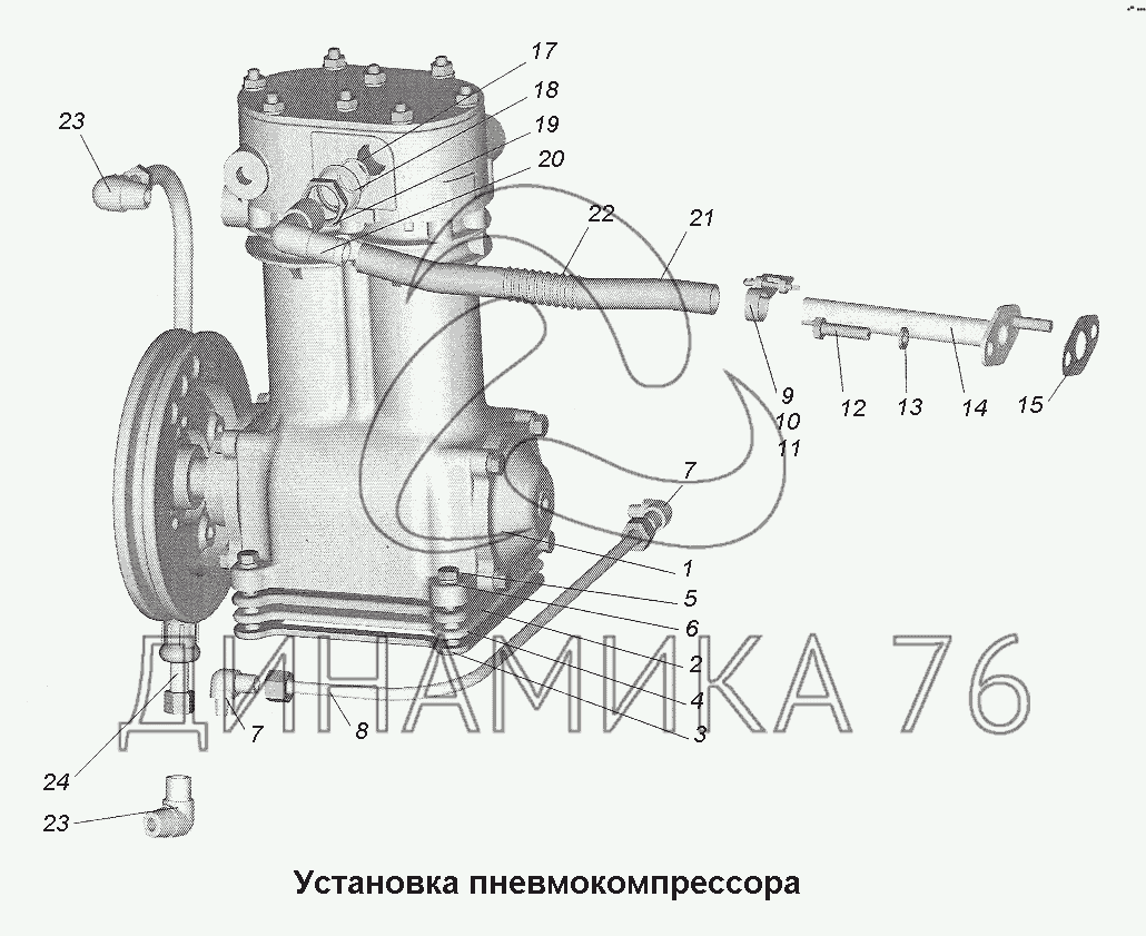 Перечень комплектующих от Установка пневмокомпрессора на МАЗ-543403, 641705, 641708