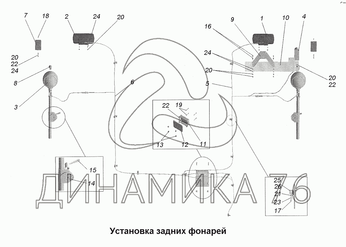 Установка задних фонарей — МАЗ-543403, 641705, 641708: