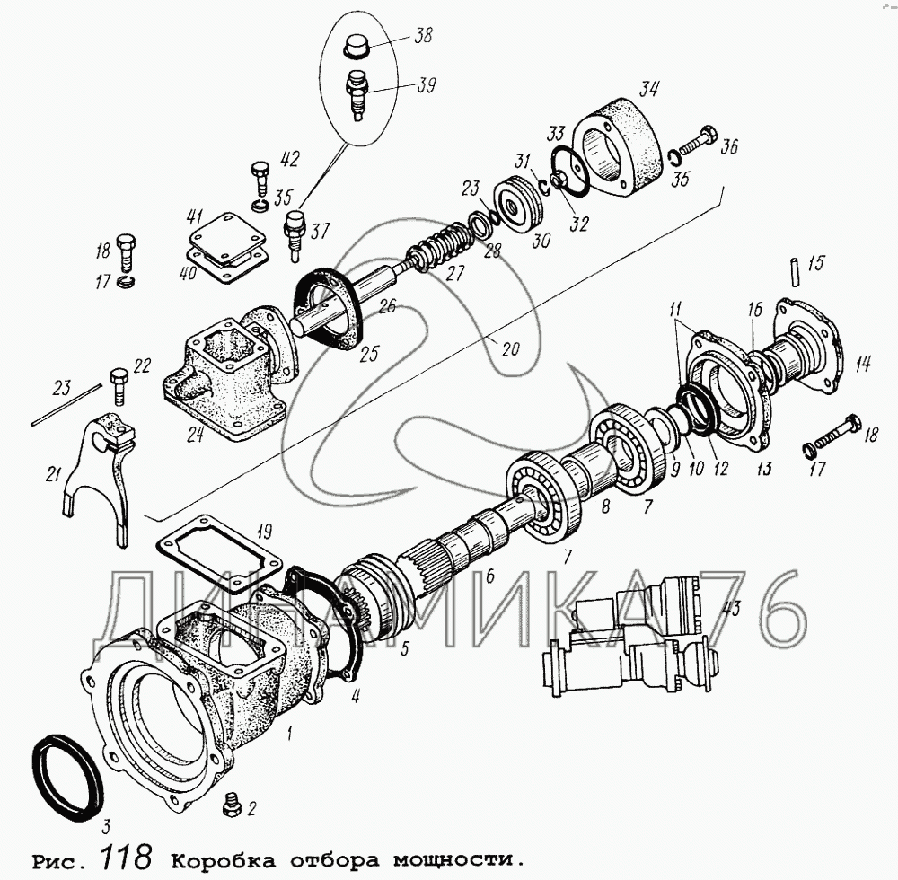 Перечень комплектующих от Коробка отбора мощности на МАЗ-5434
