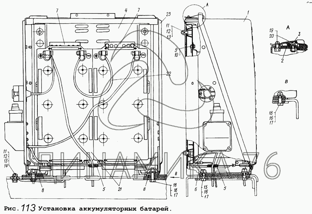 Установка аккумуляторных батарей — МАЗ-5434: