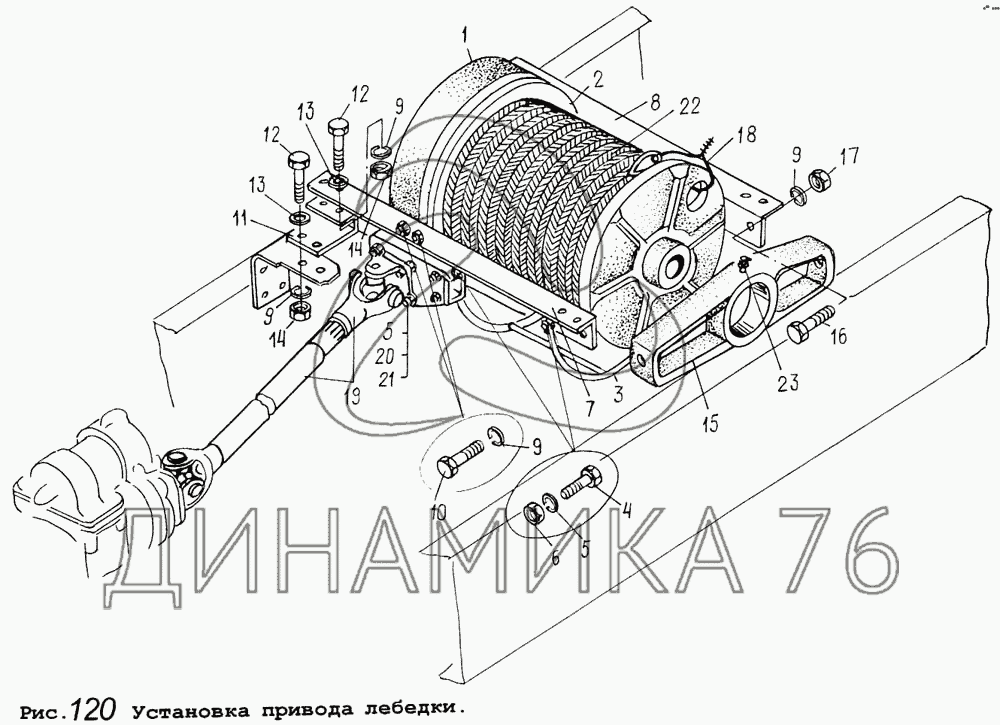 Перечень комплектующих от Установка привода лебедки на МАЗ-5434