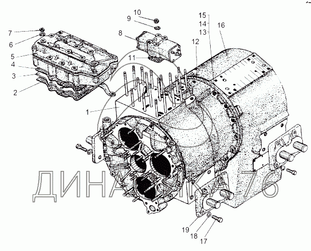 Перечень комплектующих от Гидромеханическая трансмиссия 543-1700030 на МАЗ-543 (7310)