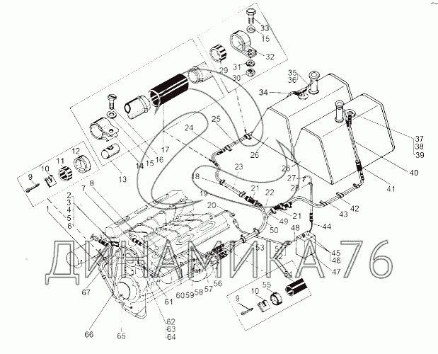 Монтажная схема топливопроводов 543A — МАЗ-543 (7310):