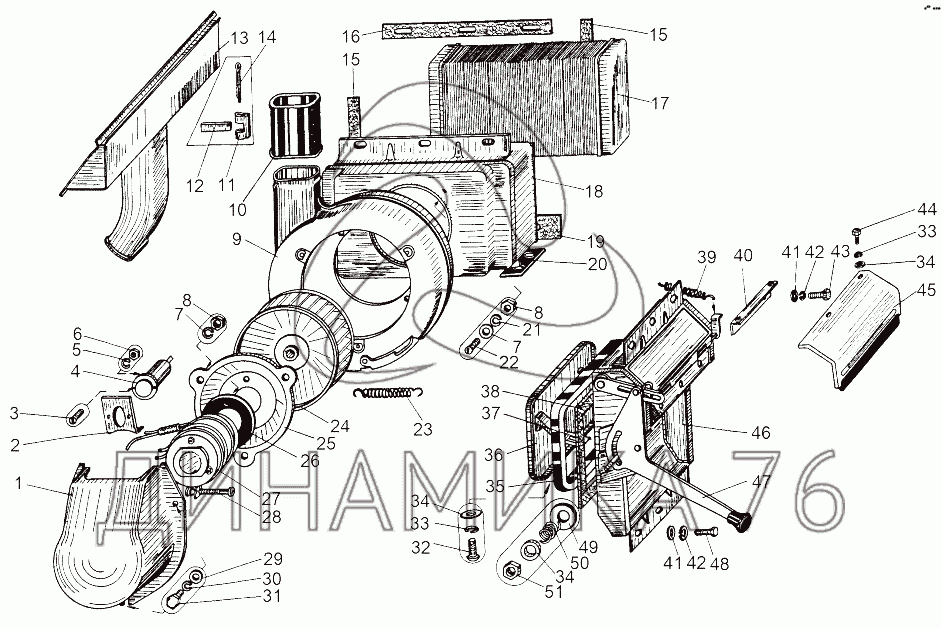 Перечень комплектующих от Отопитель кабины на МАЗ-543 (7310)