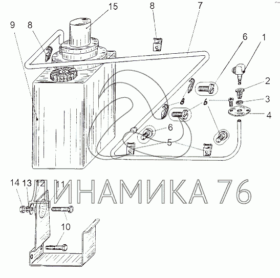 Перечень комплектующих от Установка омывателя 543 M на МАЗ-543 (7310)