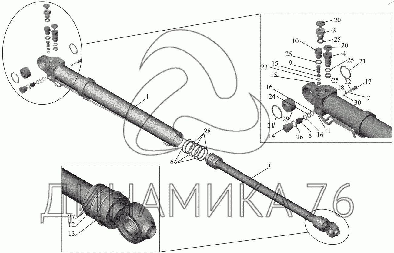 Схемы запчастей предназначены для справочных целей! Мы продаем не все запчасти от Гидроцилиндр 6430-5003010 на МАЗ-544018, представленные в этом списке.