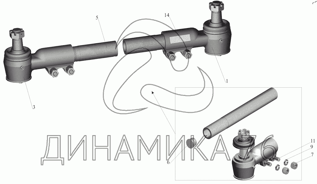 Перечень комплектующих от Тяга поперечная 64221-3003052 на МАЗ-544018