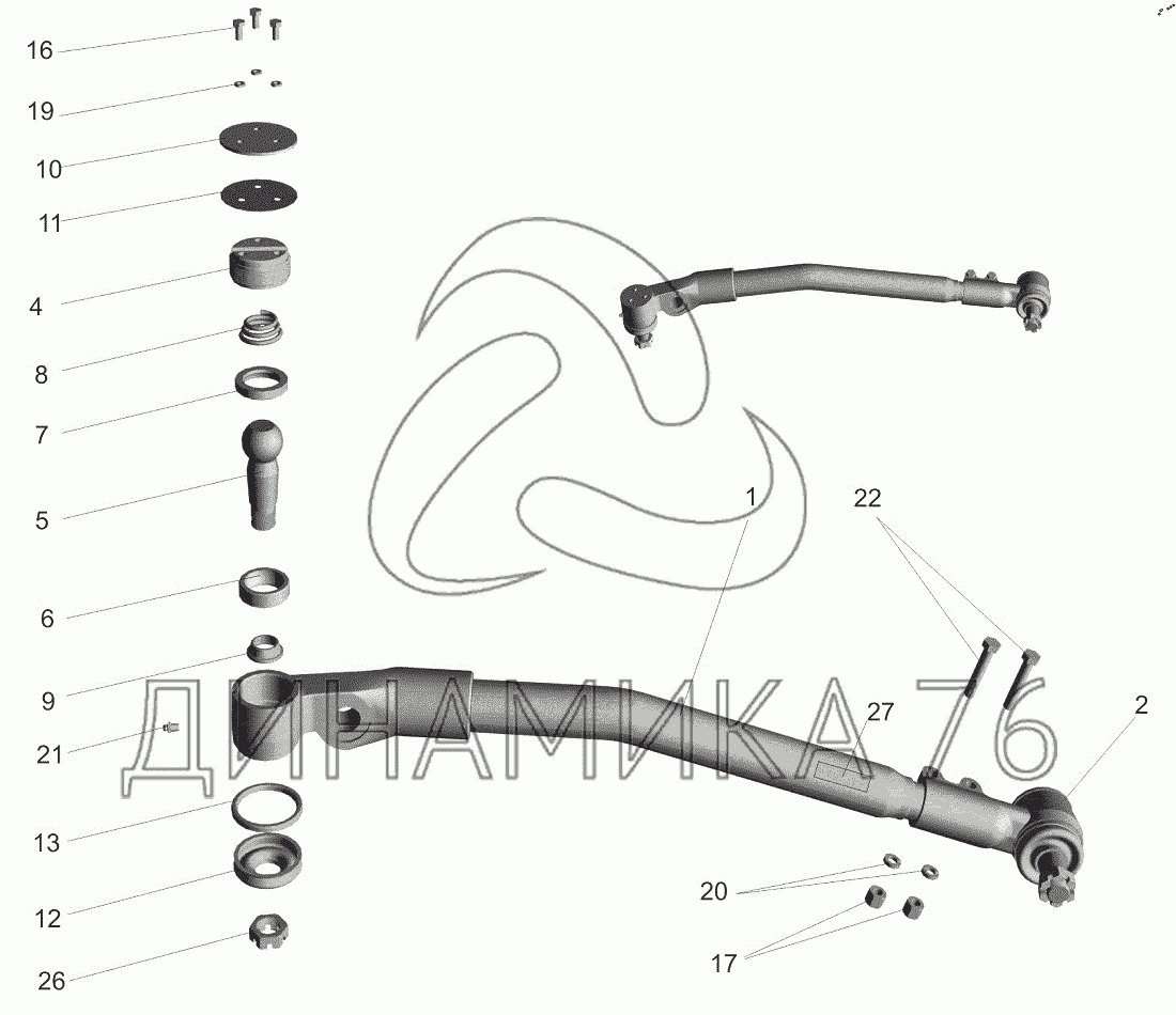 Перечень комплектующих от Тяга продольная 5440-3003010 на МАЗ-544018