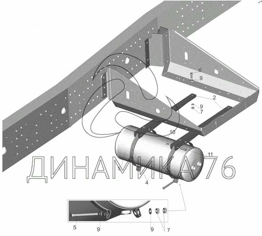 Перечень комплектующих от Установка ресивера 544018-3513004 на МАЗ-544018