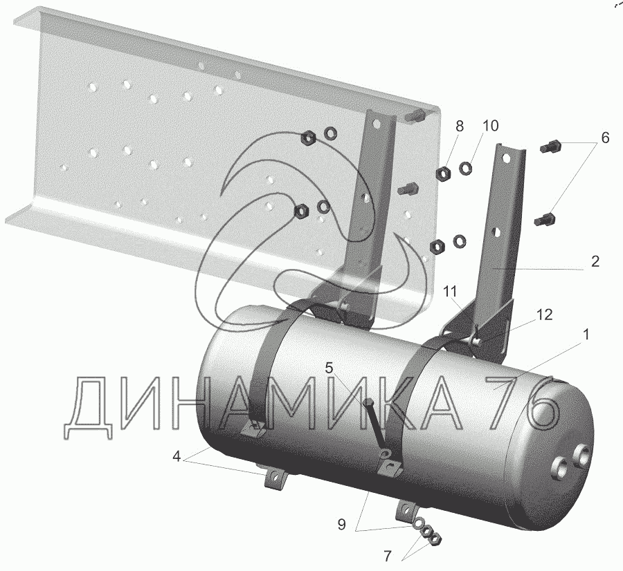 Перечень комплектующих от Установка ресивера 544018-3513005 на МАЗ-544018