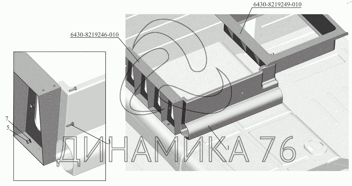 Перечень комплектующих от Установка стенки 6430-8200041 на МАЗ-544018
