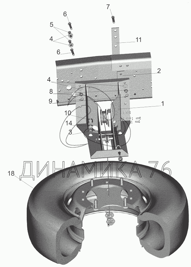 Перечень комплектующих от Установка запасного колеса на МАЗ-544018