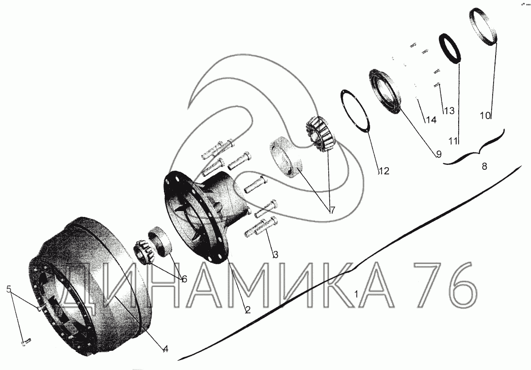 Перечень комплектующих от Ступица переднего колеса 6430-3103006 на МАЗ-544069