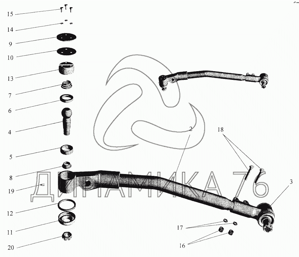 Перечень комплектующих от Тяга продольная 5440-3003010 на МАЗ-544069