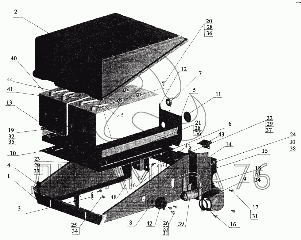 Схемы запчастей предназначены для справочных целей! Мы продаем не все запчасти от Установка аккумуляторных батарей на МАЗ-544069, представленные в этом списке.