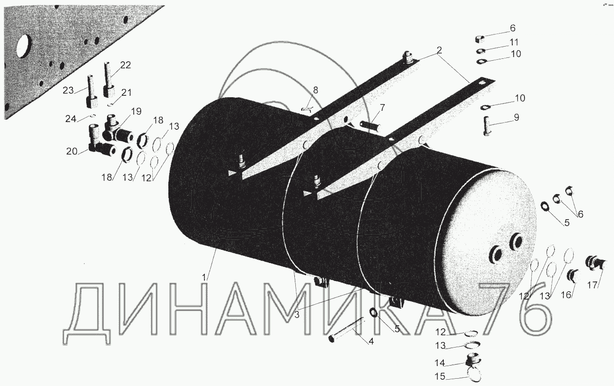 Перечень комплектующих от Установка ресивера и присоединительной арматуры на МАЗ-544069