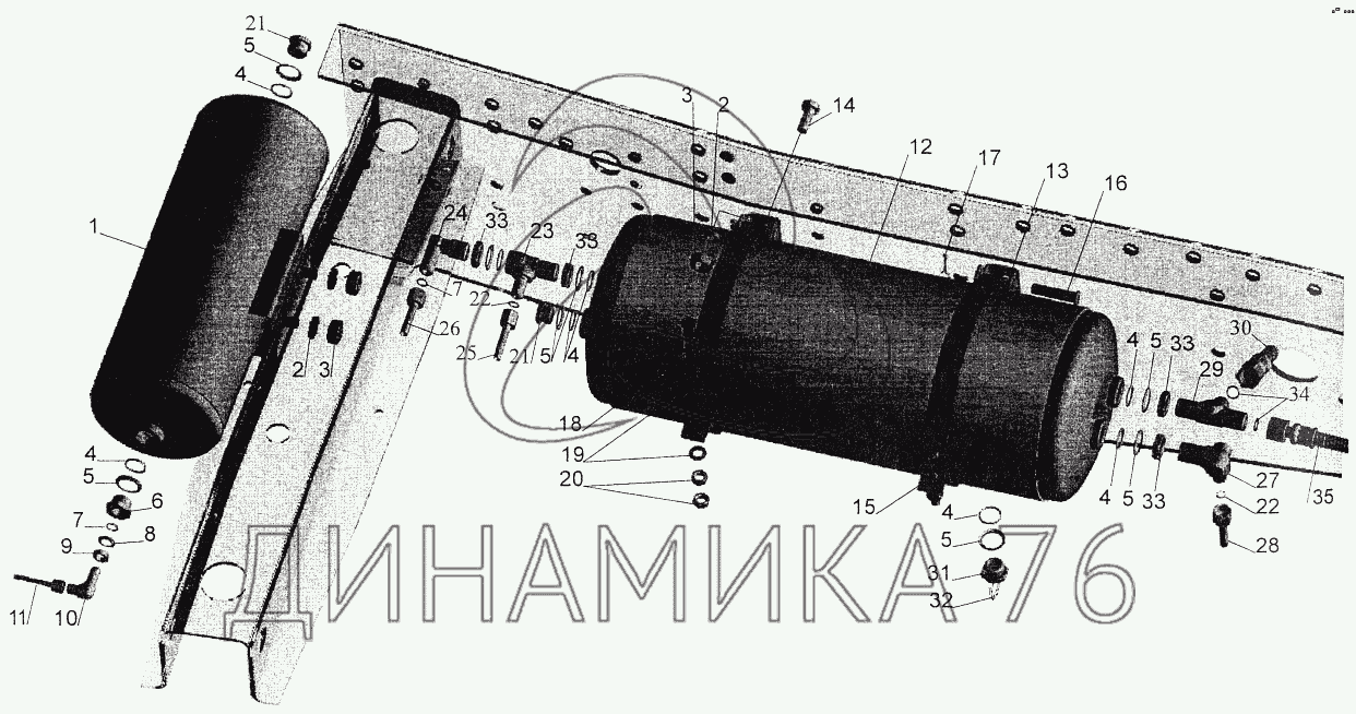 Перечень комплектующих от Установка ресиверов и присоединительной арматуры на МАЗ-544069