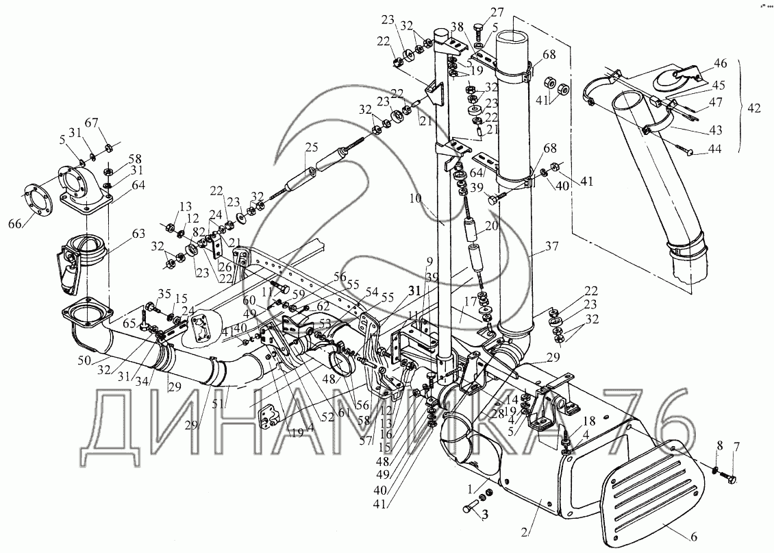 Перечень комплектующих от Установка системы выпуска 643069-1200001 на МАЗ-544069