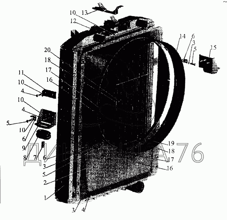 Схемы запчастей предназначены для справочных целей! Мы продаем не все запчасти от Радиатор с кожухом на МАЗ-5440, представленные в этом списке.