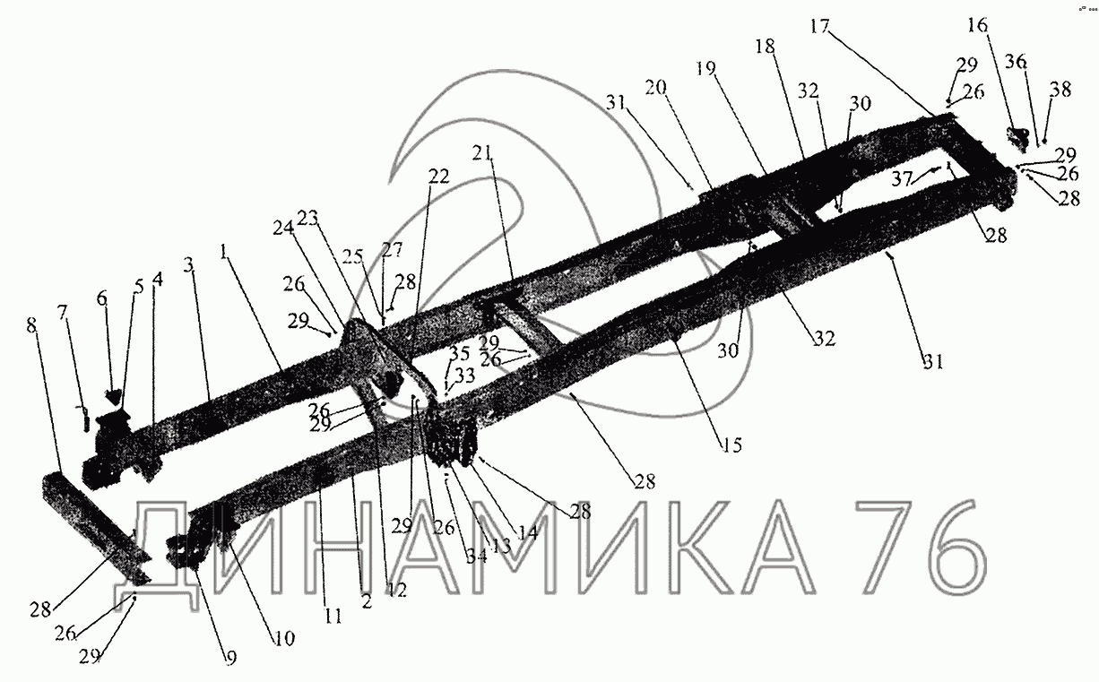 Перечень комплектующих от Рама 6430-рессорная подвеска на МАЗ-5440