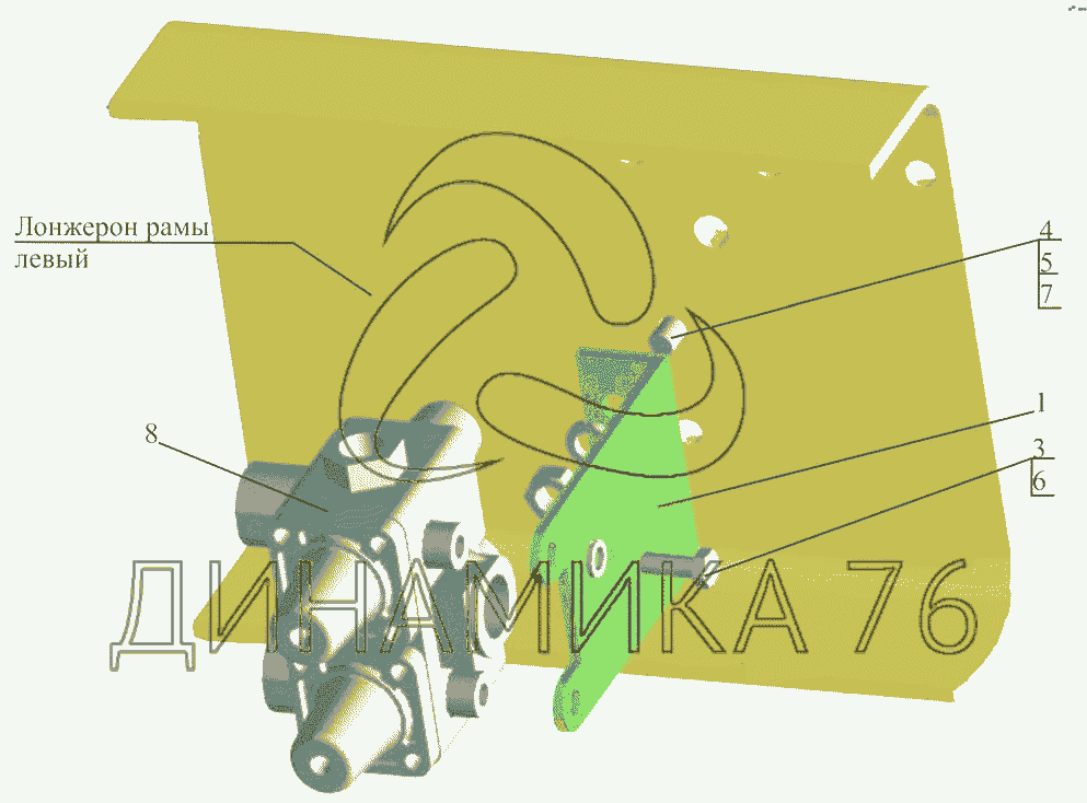 Крепление клапана четырехконтурного 438041-3515002 на МАЗ-5440B5 (до 2013 г.)