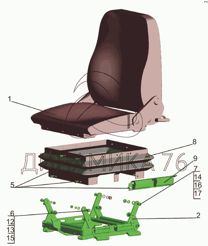 Схемы запчастей предназначены для справочных целей! Мы продаем не все запчасти от Сиденье водителя 6430-6800010 на МАЗ-5440B5, представленные в этом списке.