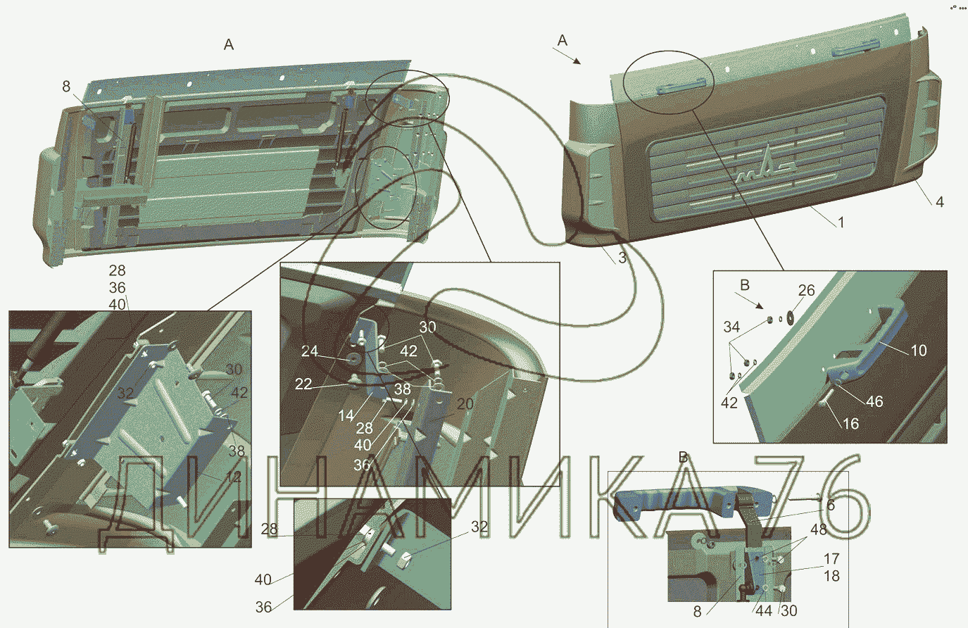 Схемы запчастей предназначены для справочных целей! Мы продаем не все запчасти от Установка щитков 6431-8400014-000 на МАЗ-5440B5, представленные в этом списке.