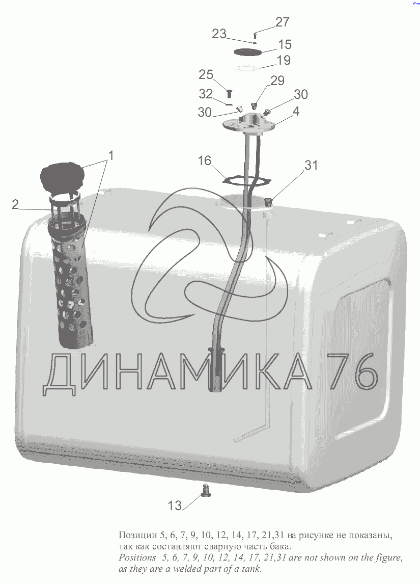 Перечень комплектующих от Бак топливный 5440B9-1101010 на МАЗ-5440B9, 6430B9