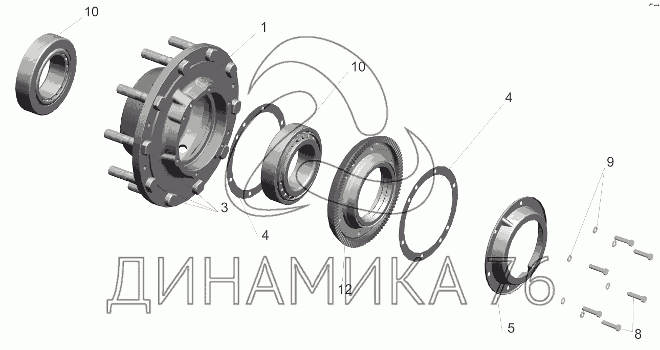 Перечень комплектующих от Ступица с крышкой на МАЗ-5440B9, 6430B9