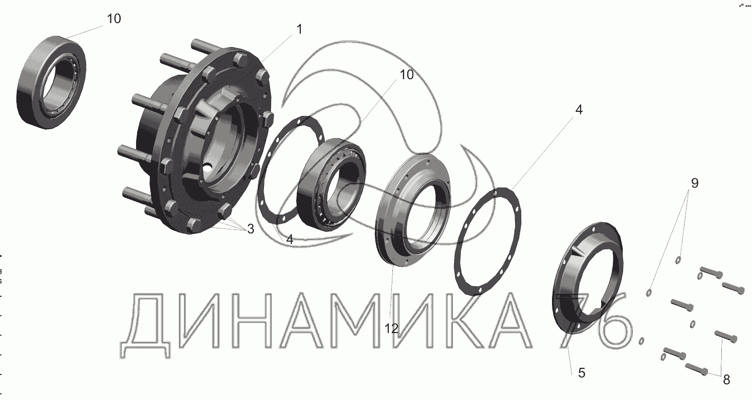 Перечень комплектующих от Ступица с крышкой на МАЗ-5440B9, 6430B9