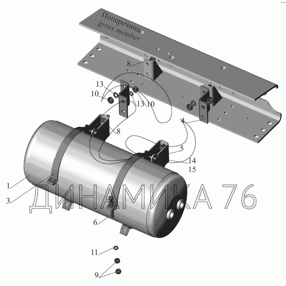 Перечень комплектующих от Установка ресивера 54401-3513007 на МАЗ-5440B9, 6430B9